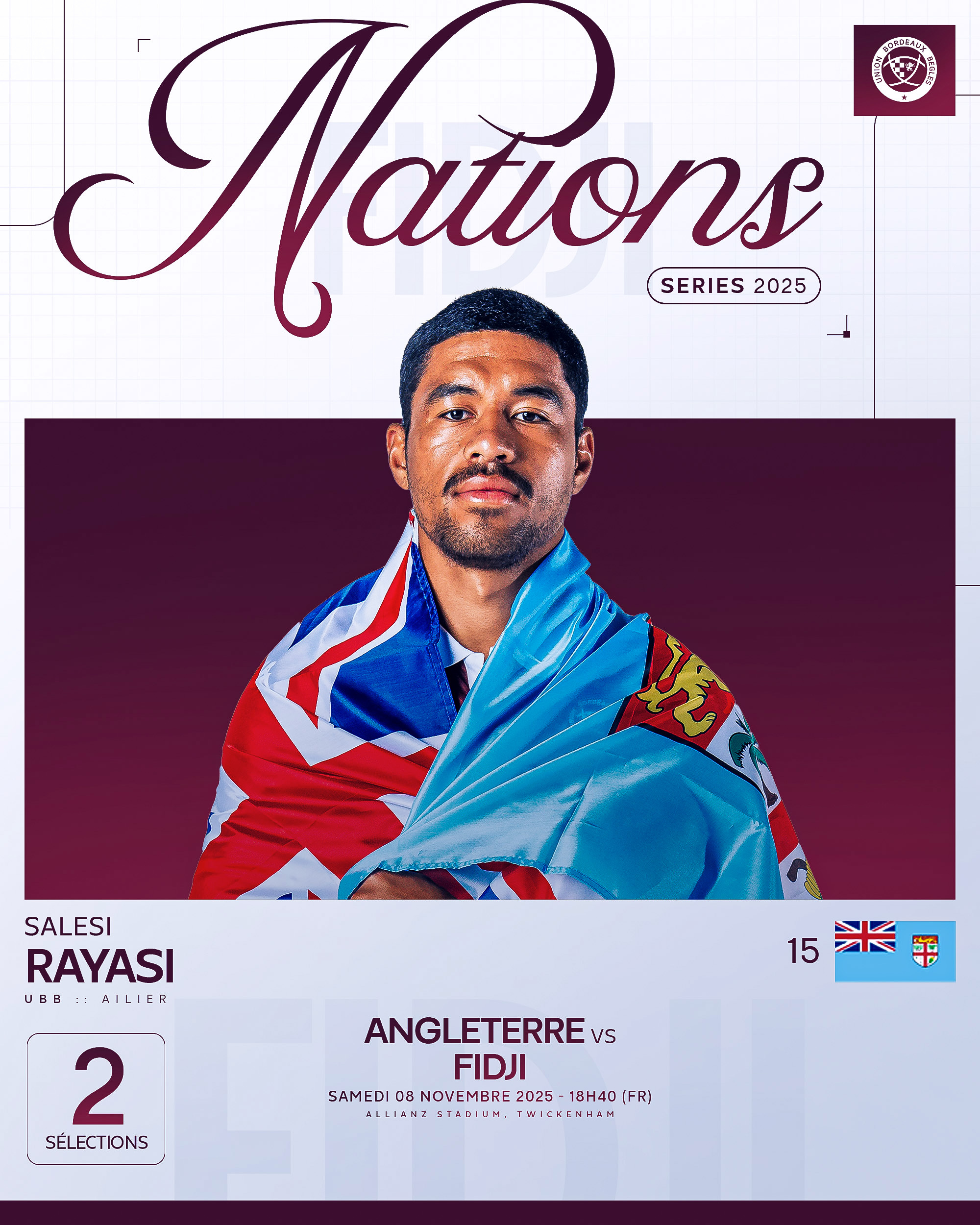 Notre ailier fidjien Salesi Rayasi, capé pour la première fois l'été dernier avec les Flying Fijians, débutera lui à l'arrière avec la sélection du Pacifique qui jouera face aux anglais ce samedi à 18h40 (heure française) à Twickenham.