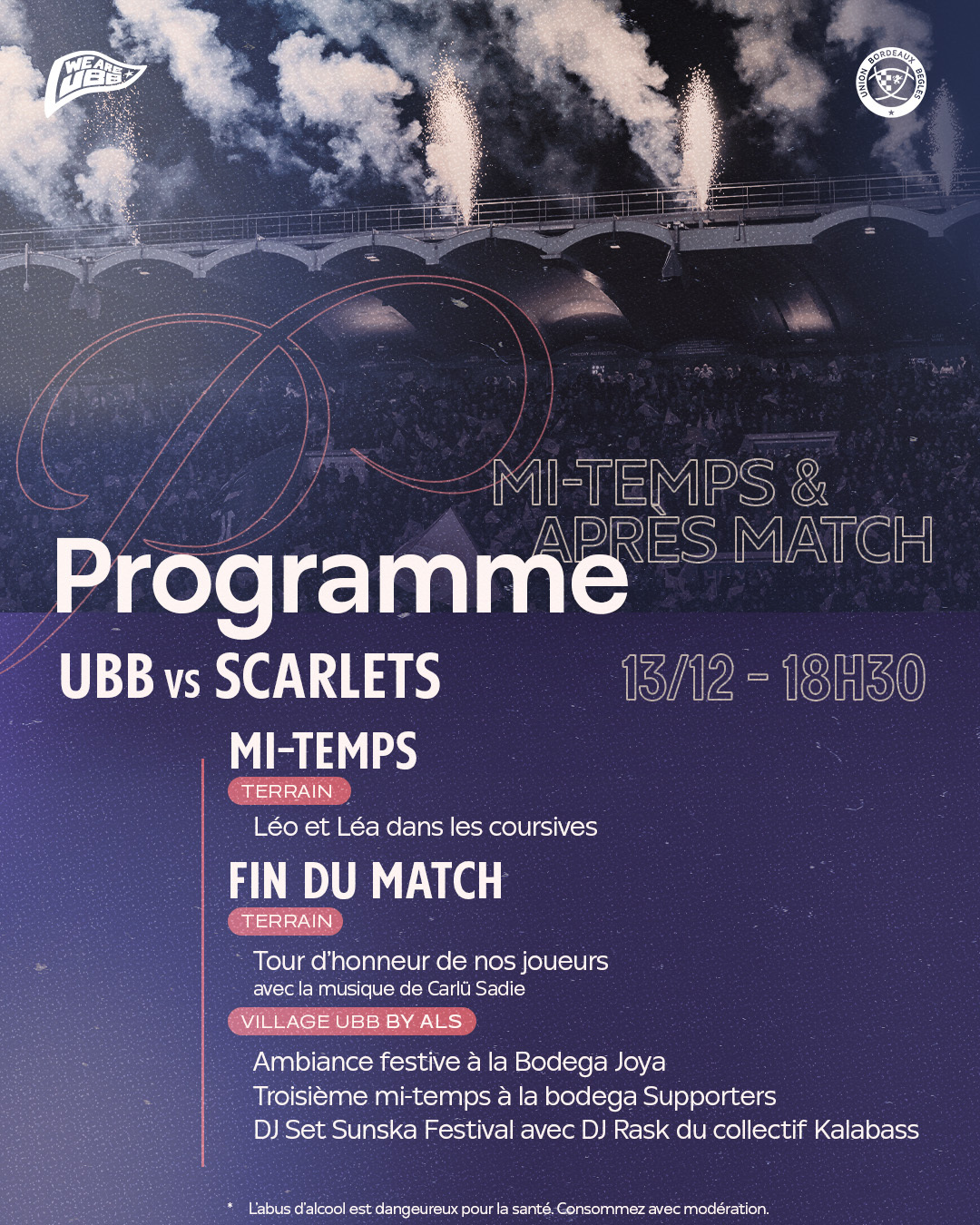 Pour cette 2e journée de Champions Cup, l'UBB reçoit les gallois des Scarlets ce samedi à 18H30. Avant-match, buvettes, boutiques... retrouvez toutes les infos à connaître sur la rencontre dans notre article :