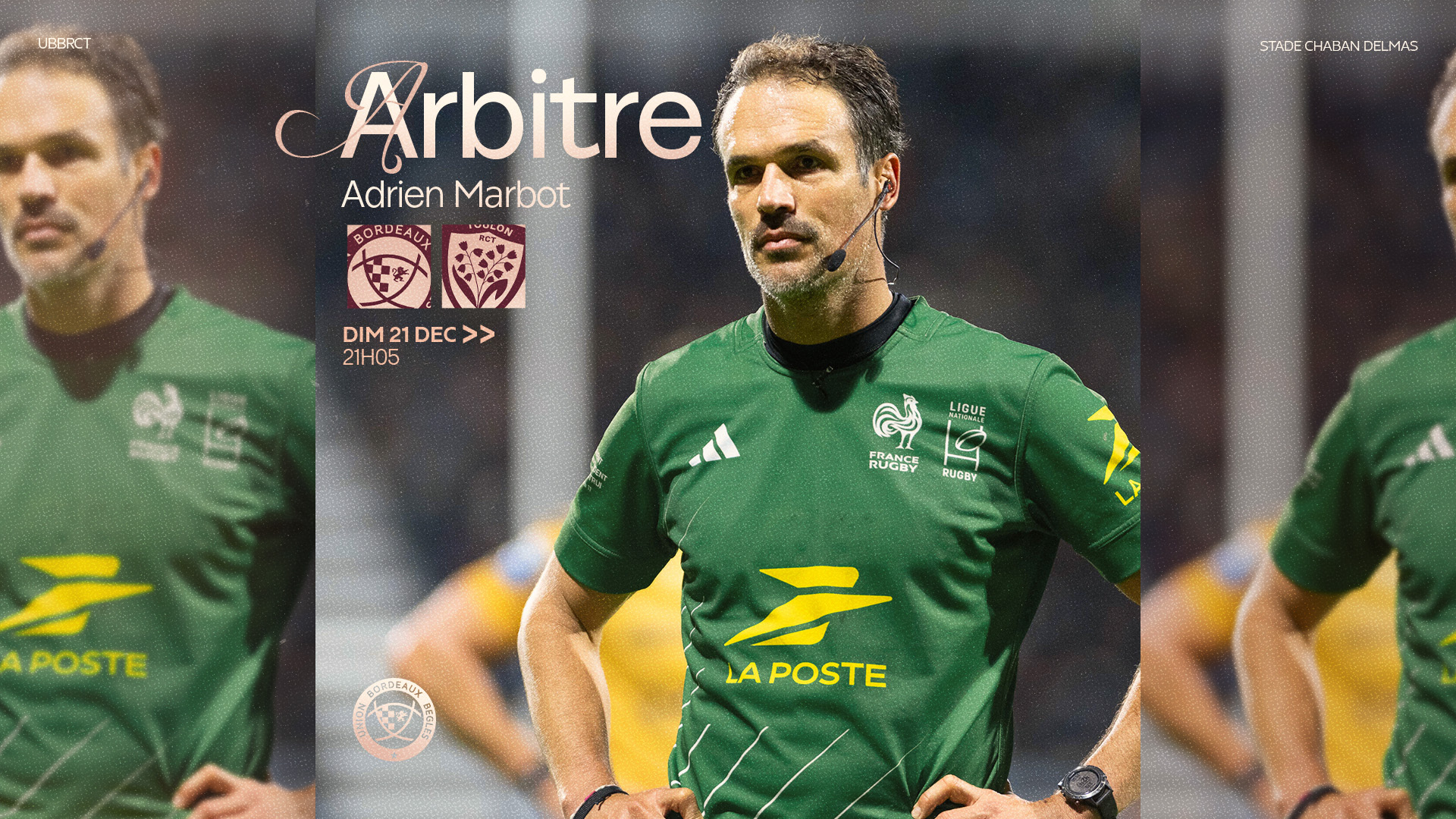 Ce dimanche soir, l'UBB reçoit les toulonnais dimanche à 21h05 au Stade Chaban Delmas. Voici le corps arbitral de cette rencontre :