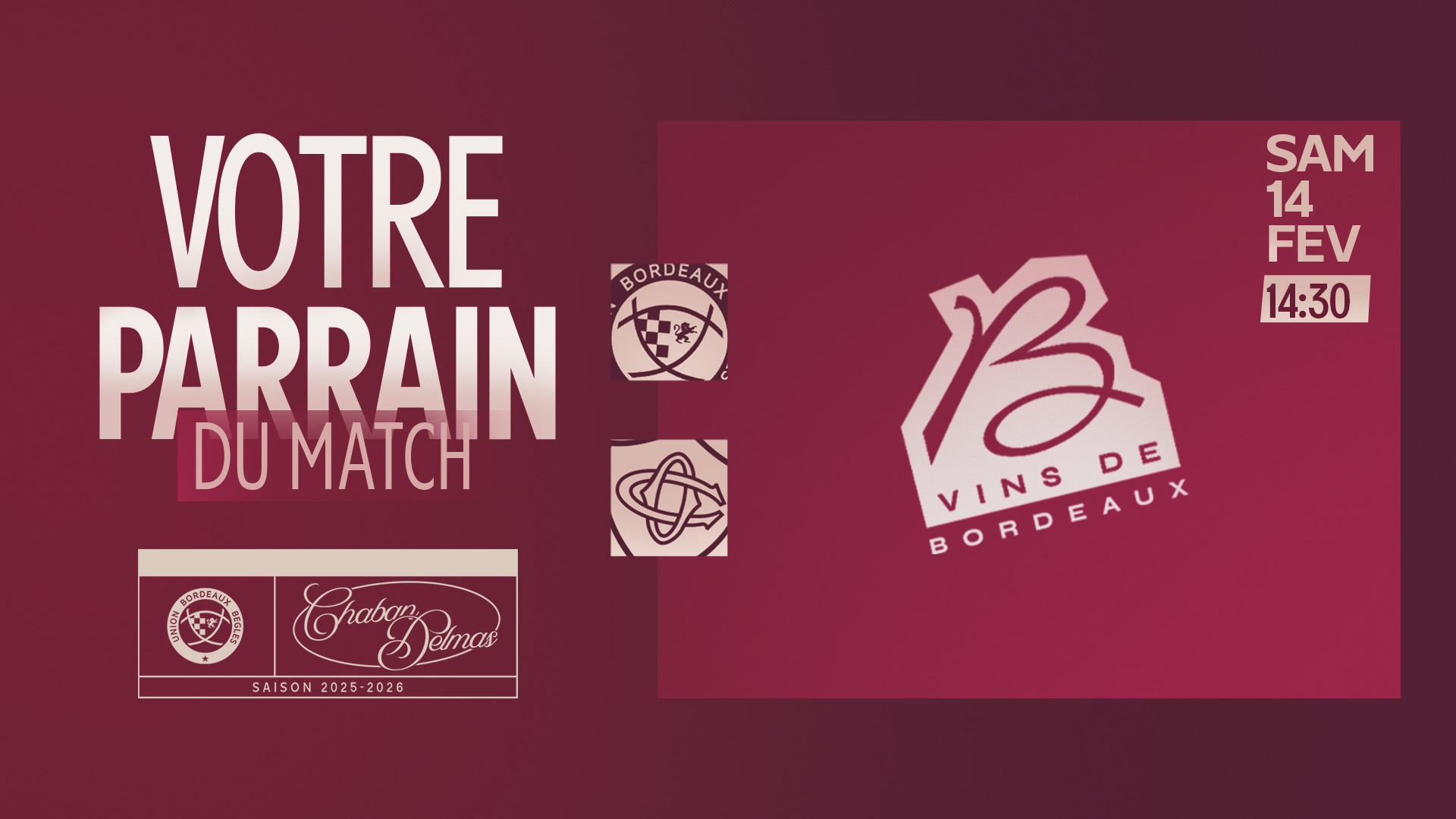 Vin de Bordeaux est le parrain du match UBB / RCT ce dimanche soir au Stade Chaban-Delmas.