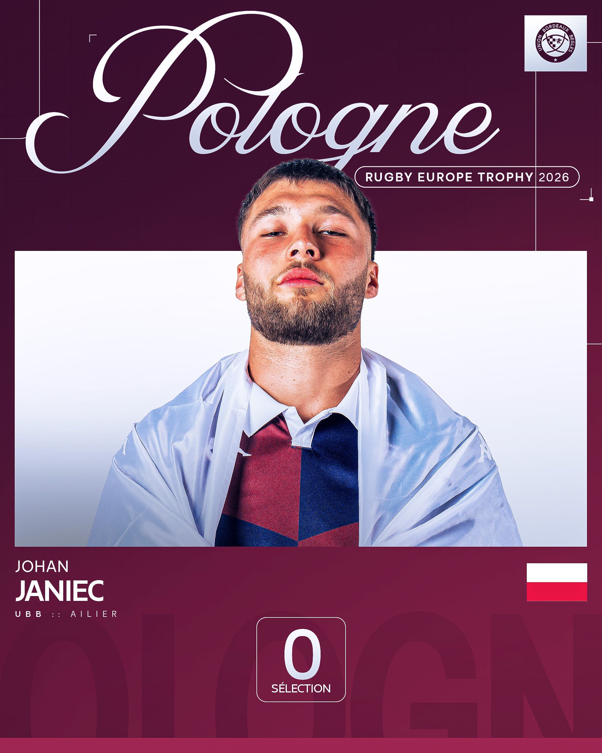 Notre jeune ailier Espoirs Johan Janiec est dans le squad de la Pologne pour préparer le Rugby Europe Trophy 2026.