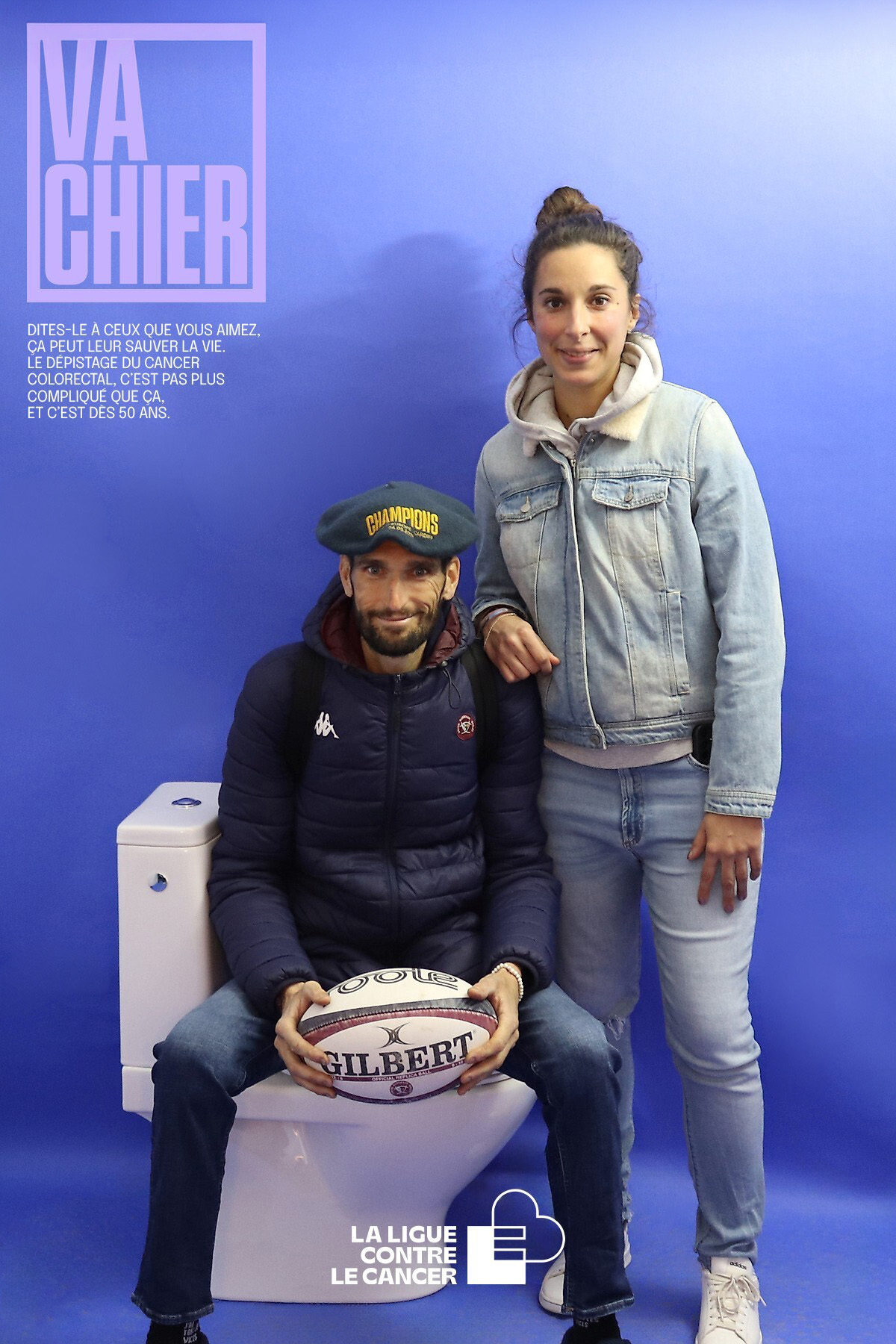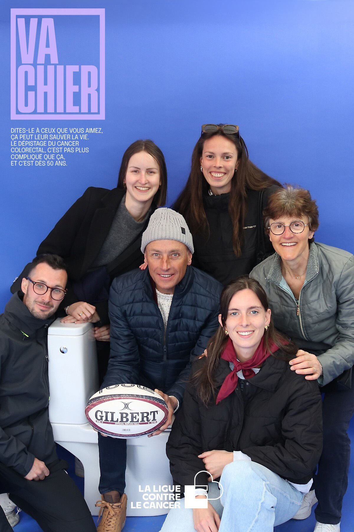 En prolongement de la campagne nationale Mars Bleu contre le cancer colorectal, la Ligue contre le cancer et l’UBB ont innové en mettant en place un Photobooth sur la fan zone du stade ce dimanche soir. Notre emblématique pilier Ben Tameifuna, qui s'était prêté au jeu en mimant la fameuse série d’affiches de la campagne « Va chier », invitait les supporters à poser à leur tour.