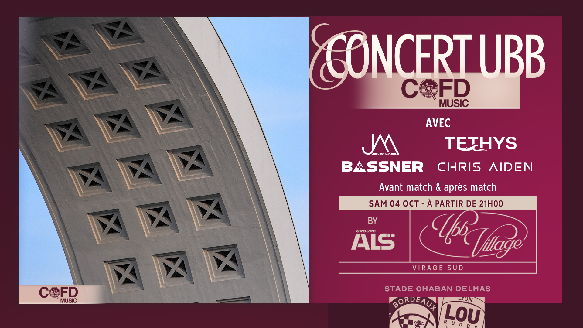 Pour cette rencontre l'UBB invite le collectif CQFD MUSIC avec 4 DJS : BASSNER, CHRIS, AIDE, TETHYS et JOHN MEY au village UBB by ALS.