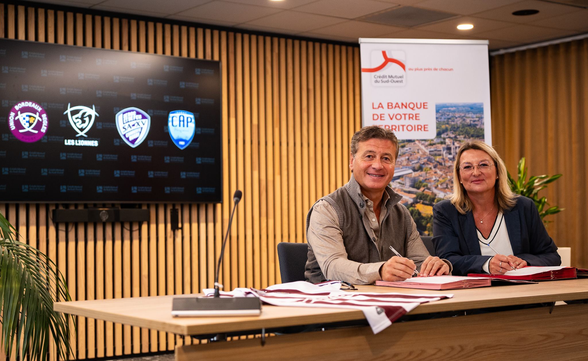 Le Crédit Mutuel du Sud-Ouest est une banque coopérative implantée en Charente, Dordogne et Gironde, c’est aussi l’une des deux fédérations du groupe Crédit Mutuel Arkéa. Avec Les Lionnes, c’est aussi l’UBB, le SA XV d’Angoulême ou le CA Périgueux qui seront soutenus par la banque. Une manière de concrétiser le soutien du Crédit Mutuel du Sud-Ouest aux 3 départements qui forment son territoire et, notamment avec le soutien aux Lionnes, de perpétuer un engagement fort en faveur de la mixité et de l’inclusion.