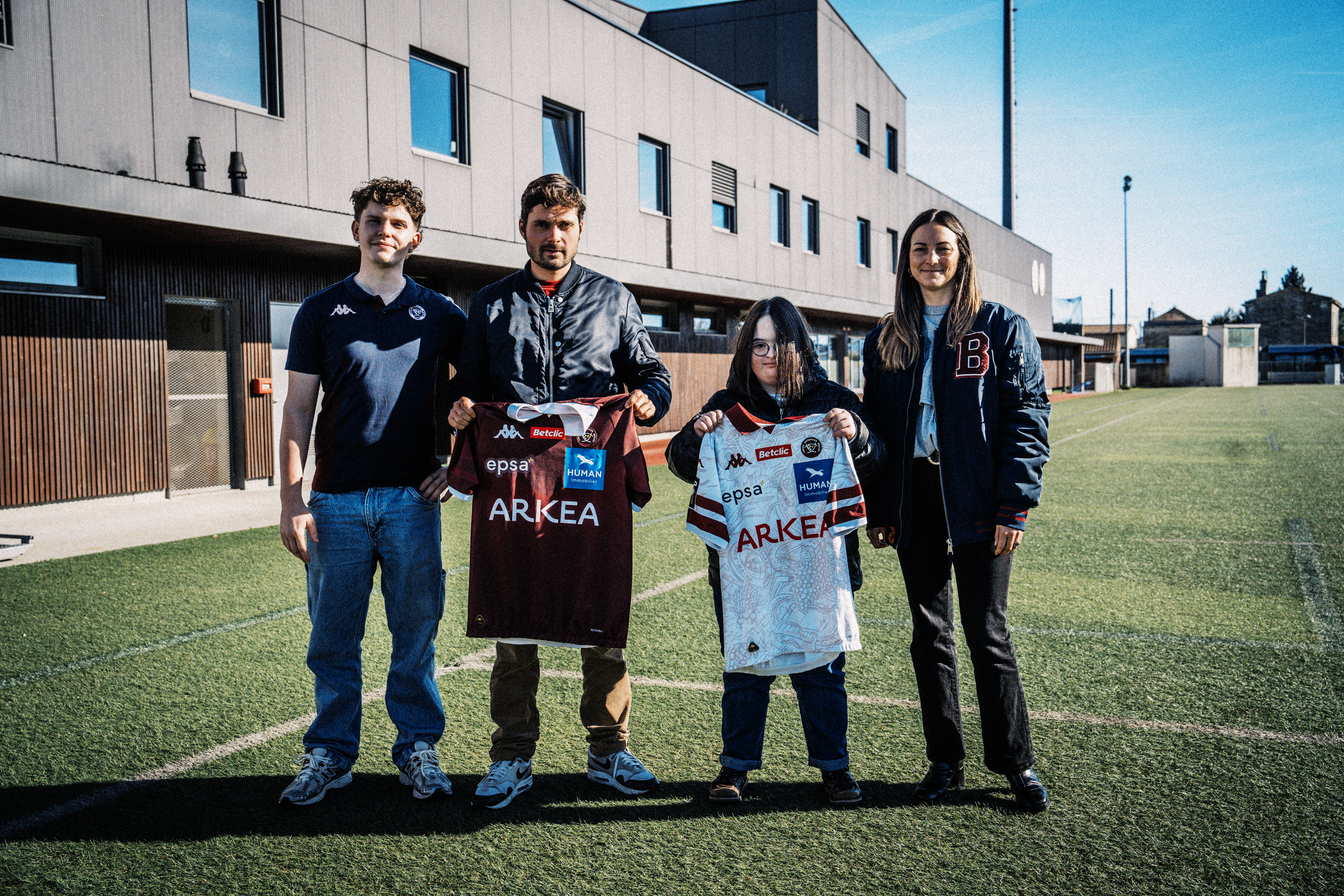 Kévin et Aurélie entourés d'Alexis Verdier, chargé administratif et pédagogique du centre de formation et d'Émilie Caïe, commerciale au club